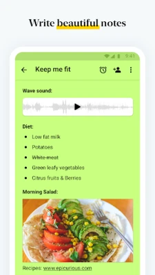 - Write notes. Start with text, add images, checklists, and audio, all in the same text note.